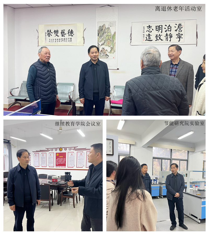 会后,调研组还实地走访了离退休处、继续教育学院和节能研究院。在离退休活动室,黄多能与离退休老同志亲切交谈,询问他们的生活状况、健康情况及实际需求,对老同志始终关心支持学校发展的情怀表示衷心感谢。在继续教育学院会议室,黄多能重点听取了继续教育在招生录取、培训项目、经费使用管理等问题的汇报,要求把严的作风贯穿招生、教学、管理等各环节。在节能研究院实验室,黄多能对节能院在节能低碳领域取得的科研成果及青年博士团队展现出的钻研精神给予充分肯定,他鼓励青年博士们要坚守科研初心,敢于攻坚克难,在科研道路上追求卓越、精益求精,同时更要恪守学术诚信,自觉维护风清气正的科研生态,以严谨的治学态度和务实的科研作风,产出高质量、有价值的科研成果。(作者:姚婷婷;一审:闵江;二审:王渊;三审:张兆许)