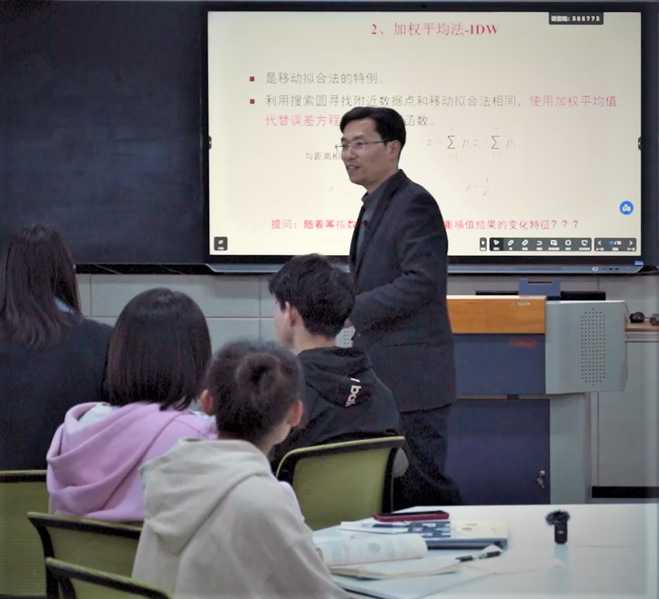 陈广洲老师积极关注专业领域的最新前沿进展和发展动态,不断地学习提升自我,不断拓宽自身的学术视野,提高自身的学术水平,为教学环节提供案例支撑与创新训练素材,将课程前沿进展引入课堂,开拓学生的科学视野。积极实施科研反哺教学,科研进课堂。结合教学内容,将科研成果与教学内容结合,推动教学质量不断进步与提高。 利用主持和参与的国家自然科学基金项目、重点研发计划项目,结合GIS概论教学内容,结合空间统计分析、空间插值方法,将科研成果制作成案例进行教学。