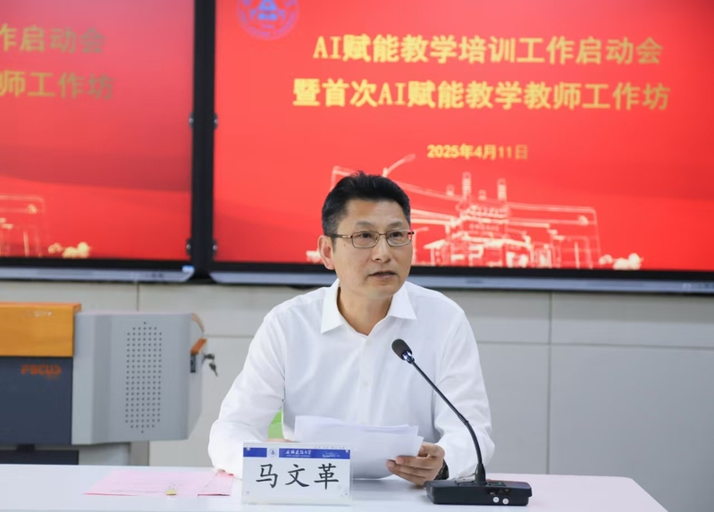 在AI赋能教学培训工作启动会上,校党委书记马文革作动员讲话。他指出,面对人工智能技术对教育领域的深刻变革,广大教师要主动拥抱新机遇、迎接新挑战,以AI技术赋能教学创新,以优良教风引领学风建设。他从“提高思想认识,深刻把握 AI 赋能教学的重要意义”、“把握时代机遇,将AI技术深度融入教育教学改革”、“聚焦教风提升,切实提升广大教师的人工智能素养”三个方面提出明确要求。各教学单位要当好AI赋能教师培训工作的“组织者”,做到规划到位、保障到位、宣传到位“三个到位”;广大教师要争做AI赋能的 “先行者”,做到主动学习、主动实践、主动创新“三个主动”。他强调,广大教师在利用AI技术的同时,要尊重科学伦理,坚持底线思维和极限思维,全面加强对学生正确价值观的培养和思维方式的训练,既要善于用新技术突破传统教育桎梏,更要坚守教育本真,让AI技术真正服务于人才培养,为建设国内一流、特色鲜明高水平建筑大学作出更大贡献。