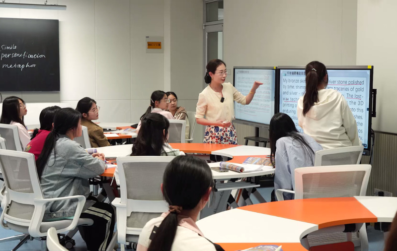 在备赛期间,靳宁老师对英语演讲课程模块进行了系统重构,针对学生普遍存在的“重讲轻演” 、“多叙少涵”问题,采用“情境化演讲教学法”,把原教材内容与国博、省博等文物资源有机融合,为学生营造出真实且富有文化内涵的演讲场景,让他们在其中锻炼演讲能力,打造出具有文化深度的 “博物馆奇妙夜演讲坊”。在教学方法上,主动引入 “案例驱动式项目学习” 模式,利用虚拟现实技术辅助学生进行沉浸式演讲训练,精心设计“文物守护者演讲计划” “文化传承者演讲方案” 等项目任务。她带领团队精心打磨的“多模态演讲学习空间” 案例,成功实现了线上虚拟仿真实训与线下多场景演讲室的联动,为学生营造出沉浸式演讲实践环境。