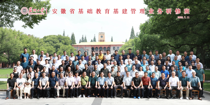 本网讯 7月10至13日,由安徽省教育基本建设学会主办苏州大学承办的“安徽省基础教育基建管理业务研修班”在苏州大学顺利举办,来自全省130多名教育系统干部参加了本次培训班。开班仪式于7月10日举行,学会秘书长李大华,苏州大学管理培训学院副院长陈星出席出席本次培训班开班仪式。