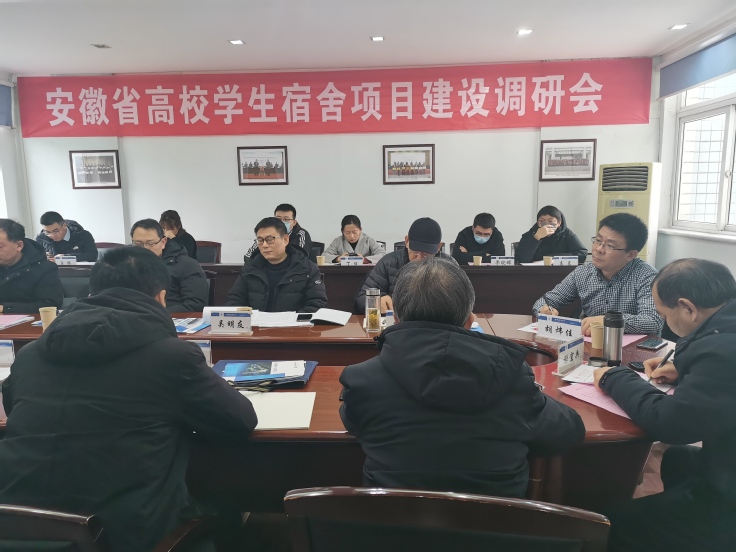本网讯 2月2日下午,安徽省高校学生宿舍项目建设调研会在beat365官方网站北校区办公楼第一会议室召开。省教育厅发展规划处副处长胡炜佳出席会议,九所高校基建负责人和三大国有银行机构业务部负责人及代表共22人参加会议,会议由安徽省教育基本建设学会副秘书长谢宜兵主持。