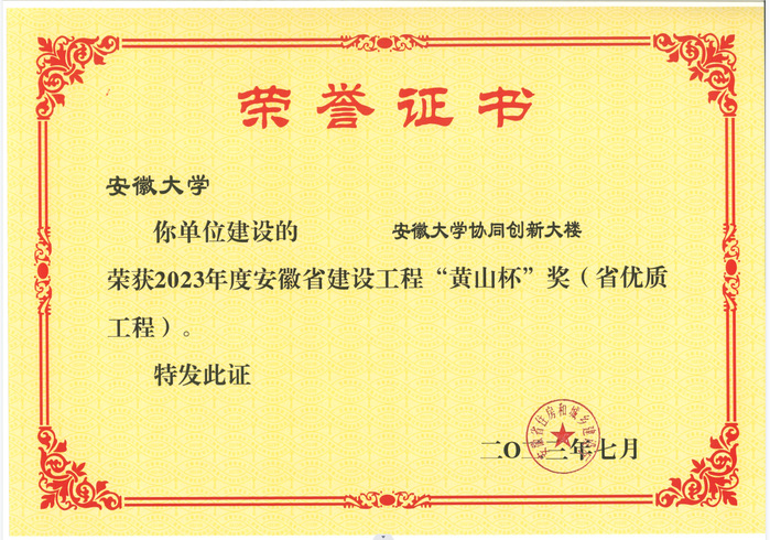 “黄山杯”优质工程奖是安徽省建设工程跨行业、跨专业的最高荣誉奖,每年表彰一次。此次beat365官网协同创新大楼荣获“黄山杯”优质工程奖,标志着工程质量达到了省内领先水平。