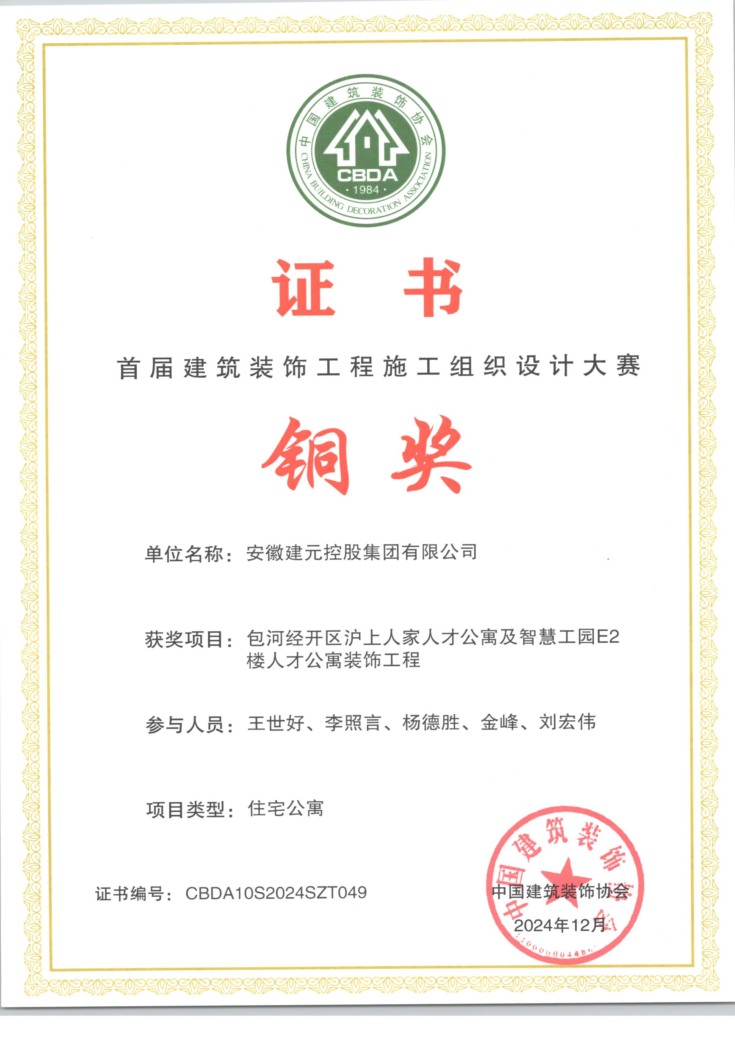 近日,安徽建元控股集团有限公司传来喜讯!承建的萧县政务服务中心综合大楼项目、合肥包河经开区沪上人家人才公寓及智慧工园 E2 楼人才公寓装饰工程,分别荣获国家优质工程奖、建筑装饰行业科学技术奖和首届建筑装饰工程施工组织设计大赛奖,此次获奖再次以实力彰显了建元控股在建筑装饰领域的地位。