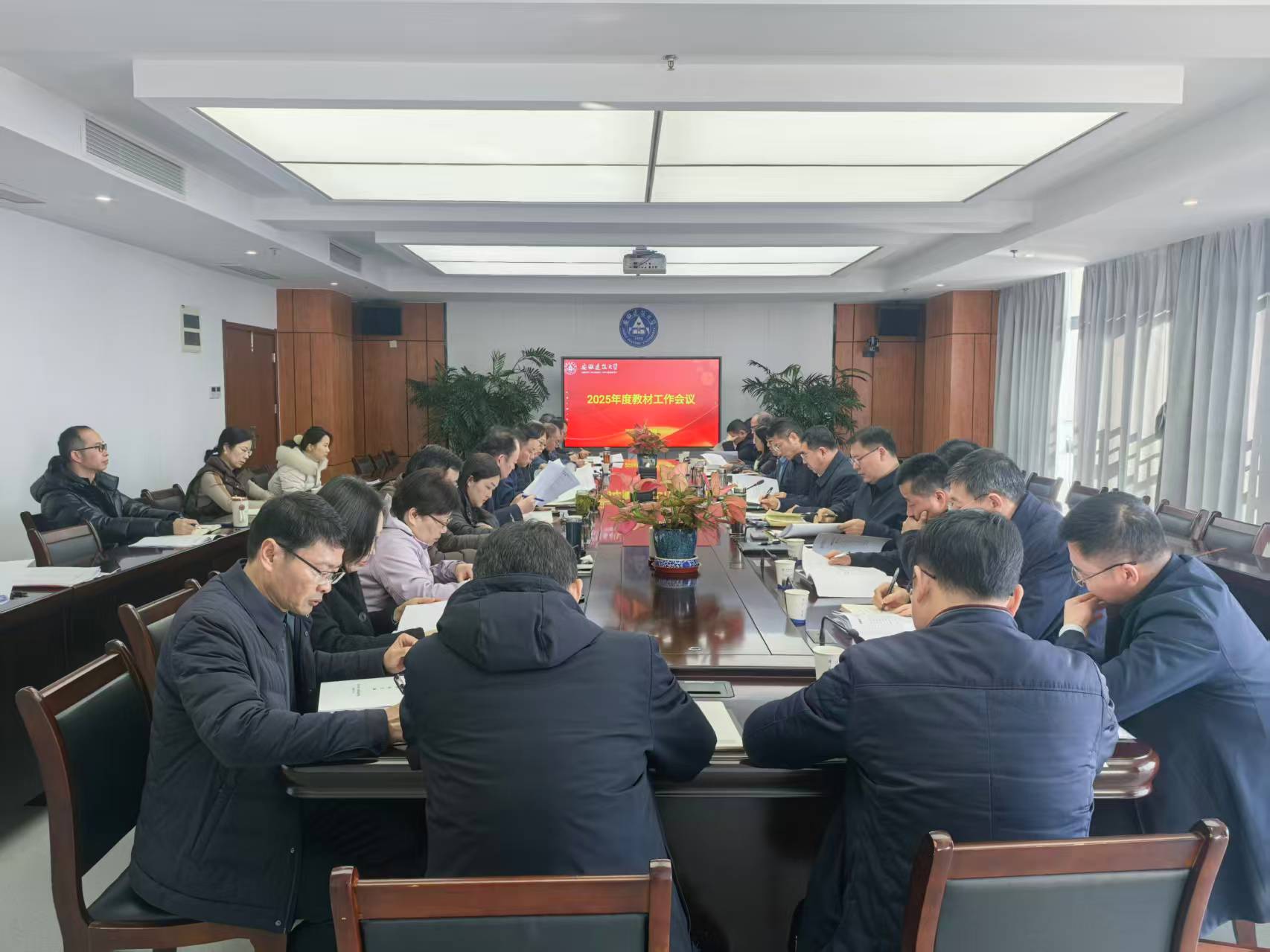 本网讯 2026年1月9日上午,beat365官方网站年度教材工作会议在紫云路校区徽风楼第二会议室召开。党委书记马文革,党委副书记、校长蔡国军,党委常委、副校长杨科出席会议,学校教材工作领导小组成员及本科生院相关人员参加会议。会议由蔡国军主持。本次会议旨在全面总结“十四五”期间教材建设工作,部署“十五五”教材规划与2026年度重点任务,为推动学校教材工作高质量发展明确方向。