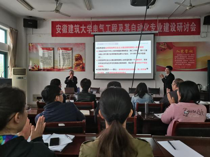 本网讯 为推动电气工程及其自动化专业工程教育认证工作,机电学院于4月11日举办电气工程及其自动化专业建设研讨会。机电学院院长张润梅教授主持研讨会,中国工程教育专业认证资深专家、北京航空航天大学申功璋教授应邀为本次研讨会做主旨报告,教务处处长储金龙教授、副院长雷经发教授、电气工程系和控制工程系全体教师参加。