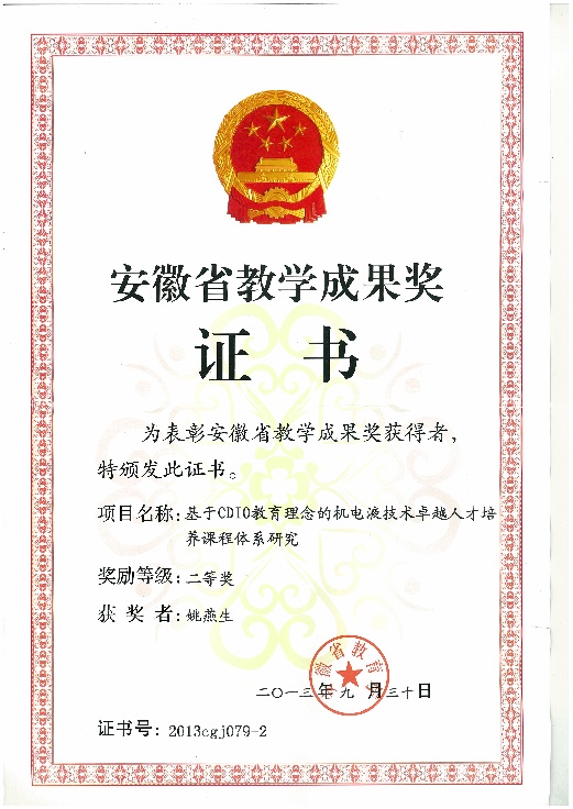 机械电子工程专业教学团队由承担专业教学任务的教师组成,现有专业教师20余人,其中教授5人,副教授(含高级实验师)10人,14人具有博士学位。本专业教学团队下设四个课程组,分别是工程机械、机械基础、先进制造技术、机电液一体化,具有省级教学团队1个,校级教学团队2个教学团队近5年来承担以国家自然科学基金为代表的国家、省、厅、学校各级各类科研教研课题60余项,发表学术论文120篇(其中一、二类或国际三大检索收录论文共50余篇),获得国家专利10余项,主编或参编教材6部及学术著作1部。近年来获得安徽省教学成果一等奖、二等奖3项、中国建设教育协会二等奖1项,获得省级质量工程10余项。