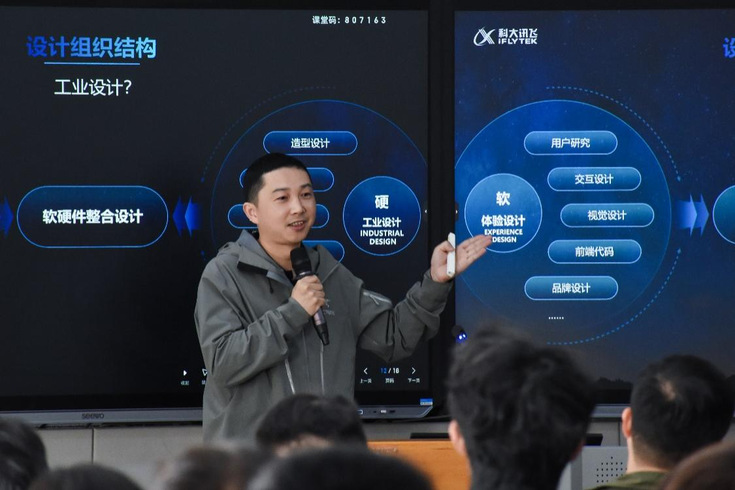 本网讯 为贯彻落实习近平总书记视察安徽重要讲话精神,培养大学生科技创新能力,紧密结合专业特色,以“设计+X”党建品牌培树赋能高质量发展,10月30日,工业设计教师党支部邀请科大讯飞的四位设计师,开展工业与交互设计前沿讲座。讲座邀请了合肥大学及beat365官方网站艺术学院的师生共同参与,机电学院工业设计系党支部教师及工业设计专业大一至大三年级专业百余名学生参加。