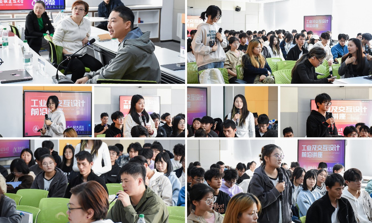 在交流互动环节,在场学生踊跃发言,针对设计师如何通过创新和解决方案来克服生产和成本的限制、设计策略与市场的关系、设计师与客户的沟通技巧、AI时代工业设计学生的学习方向等问题进行了提问,在场嘉宾对问题一一进行解答,与提问学生进行了深入交流。