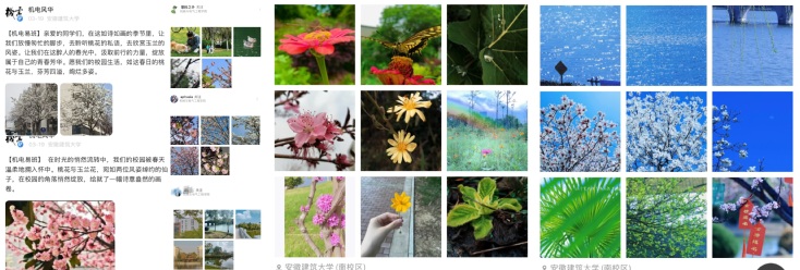 易班话题平台俨然成为春日影展的绚丽秀场,超百件描绘春色的佳作在此争奇斗艳。逸夫楼前,如云似雾的樱花烂漫盛放,工科生们借助微距镜头,精准抓取蝴蝶振翅刹那,绒毛上闪烁的晶莹花粉成为画面焦点;易海湖畔,九月桥的倒影与垂柳依依相伴,宛如一幅天成的水墨画卷;宿舍楼前,白玉兰优雅舒展,恰似身着霓裳羽衣,将春日的浪漫情思写入时光相册。