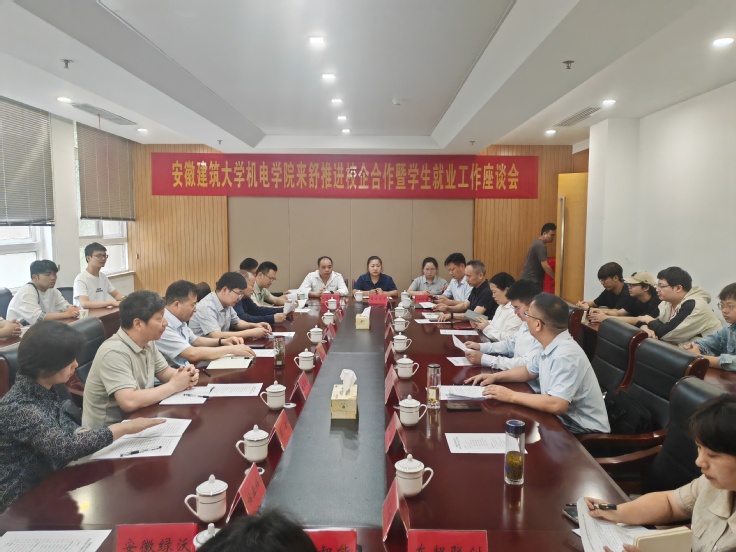 程斌在主持座谈会时介绍舒城县工业经济发展情况,朱丽娟就当地人才引进政策进行了专业解读。与会双方就建立常态化对接机制、共建实训基地、高等研究院项目等事项达成意向。多家企业现场提出人才需求,多名毕业班的同学表达了就业意向。