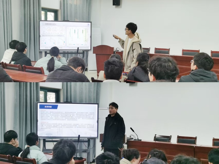刘紫阳同学以自身的求学与科研经历生动诠释了“路虽远行则将至,事虽难做则必成”的精神内涵。他围绕学业成果、科研进展和求职经验进行了讲述,不仅为同学们树立了追求卓越的学习榜样,也为研究生在学业规划、科研实践及就业准备给予了具体指导。