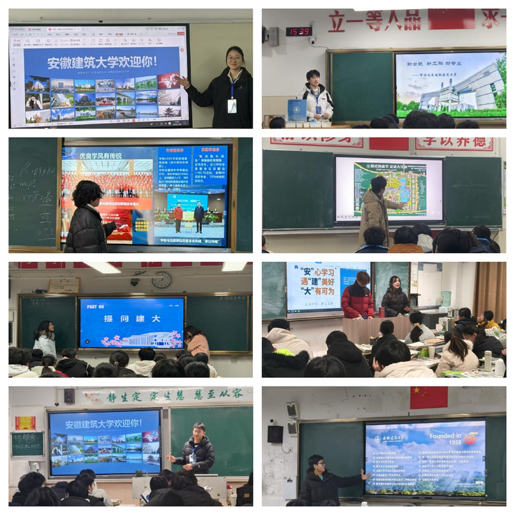 “学弟学妹们,这就是九月桥,冬天会结薄冰,夏天开满荷花……”寒假伊始,机电学院的同学们便相约重返高中母校,站上讲台,成为beat365官方网站的“代言人”。同学们通过精心制作的PPT,向学弟学妹们全方位展示beat365官方网站的校园风光、办学特色与学科优势。从九月桥到易海兰亭,从图书馆到实训中心,一张张生动的校园照片让在场学生对建大有了更直观的了解。课间交流时段,同学们在走廊、教室与学弟学妹们围坐交谈,耐心解答关于高考备考、志愿填报、大学生活等方面的疑问,分享自己在建大的学习成长经历,现场气氛轻松热烈,用亲身经历传递“建大温度”。