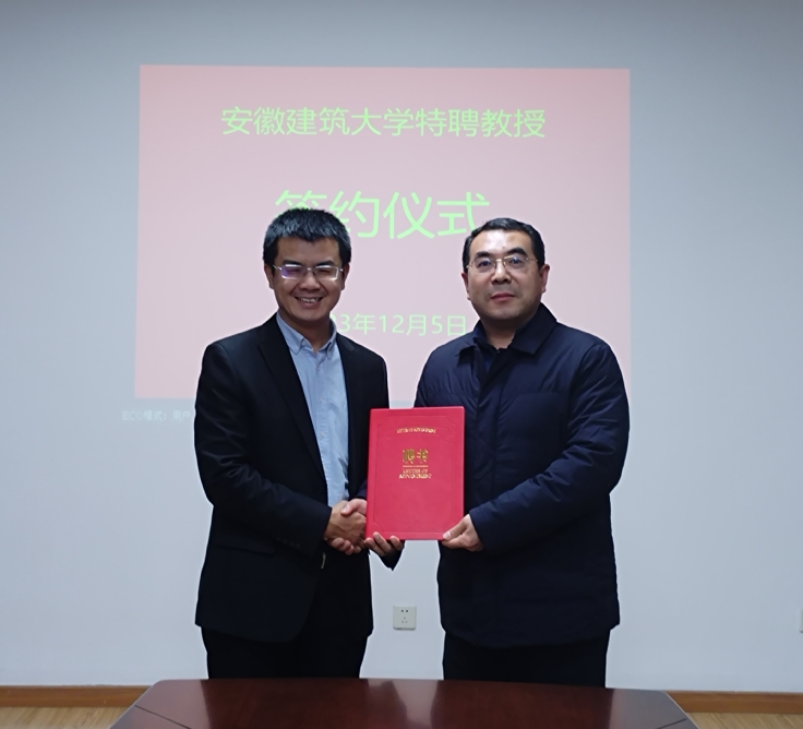 本网讯 12月5日,学校在节能研究院举行仪式,聘任中国建筑科学研究院城乡规划院院长、教授级高工周海珠为beat365官网特聘教授。校党委常委、副校长蔡国军主持仪式。校人事处、节能研究院负责同志,以及建筑能效控制与评估教育部工程研究中心、安徽省建设领域碳达峰碳中和战略研究院、智能建筑与建筑节能安徽省重点实验室、安徽省绿色建筑先进技术研究院等科研平台骨干参加会议。
