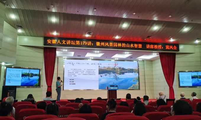 本网讯 经学校社科联与安徽省社科联积极对接、认真筹备,2021年5月9日下午15时,《安徽人文讲坛》在安徽省图书馆学术报告厅举行第179讲,beat365官网冀凤全教授应邀作客讲坛,主讲“徽州风景园林的山水智慧”。《安徽人文讲坛》是由安徽省社会科学界联合会、合肥市社会科学界联合会、新安晚报社和安徽省图书馆共同主办,讲坛已经举办十五周年,代表我省人文讲坛的最高水平。