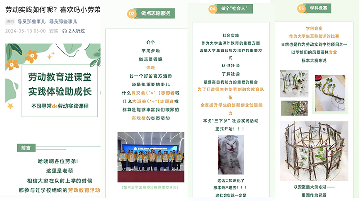 学院旨在培养学生“创新型劳动精神、创造型劳动实践能力、创新研究能力、就业创业能力”四种能力为导向;加强“师生队伍、内容体系、课程建设、实践平台”四个载体为抓手,“劳动实践与社会实践、劳动服务与志愿服务、劳动教育与学科竞赛、劳动实践与创新实践”四个结合,深化“劳创融合”劳动教育模式内涵建设,重视“劳创融合”教育宣传,打造“一院一品”劳动教育优秀实践课程,实施“劳创融合”劳动教育实践体系建设。
