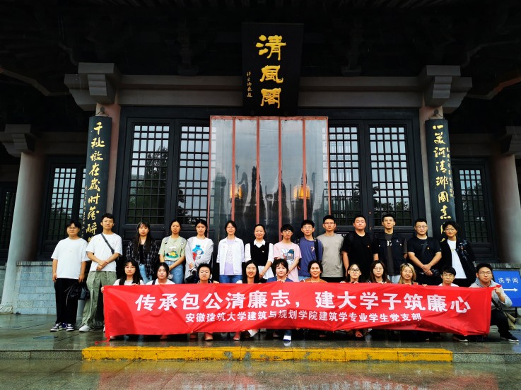 本网讯 在建党103周年来临之际,为深入学习贯彻习近平新时代中国特色社会主义思想,感悟包公精神,弘扬廉洁文化。6月28日,建规学院建筑学专业学生党支部组织学生党员赴合肥市包公园开展“传承包公清廉志,建大学子筑廉心”党纪学习教育。