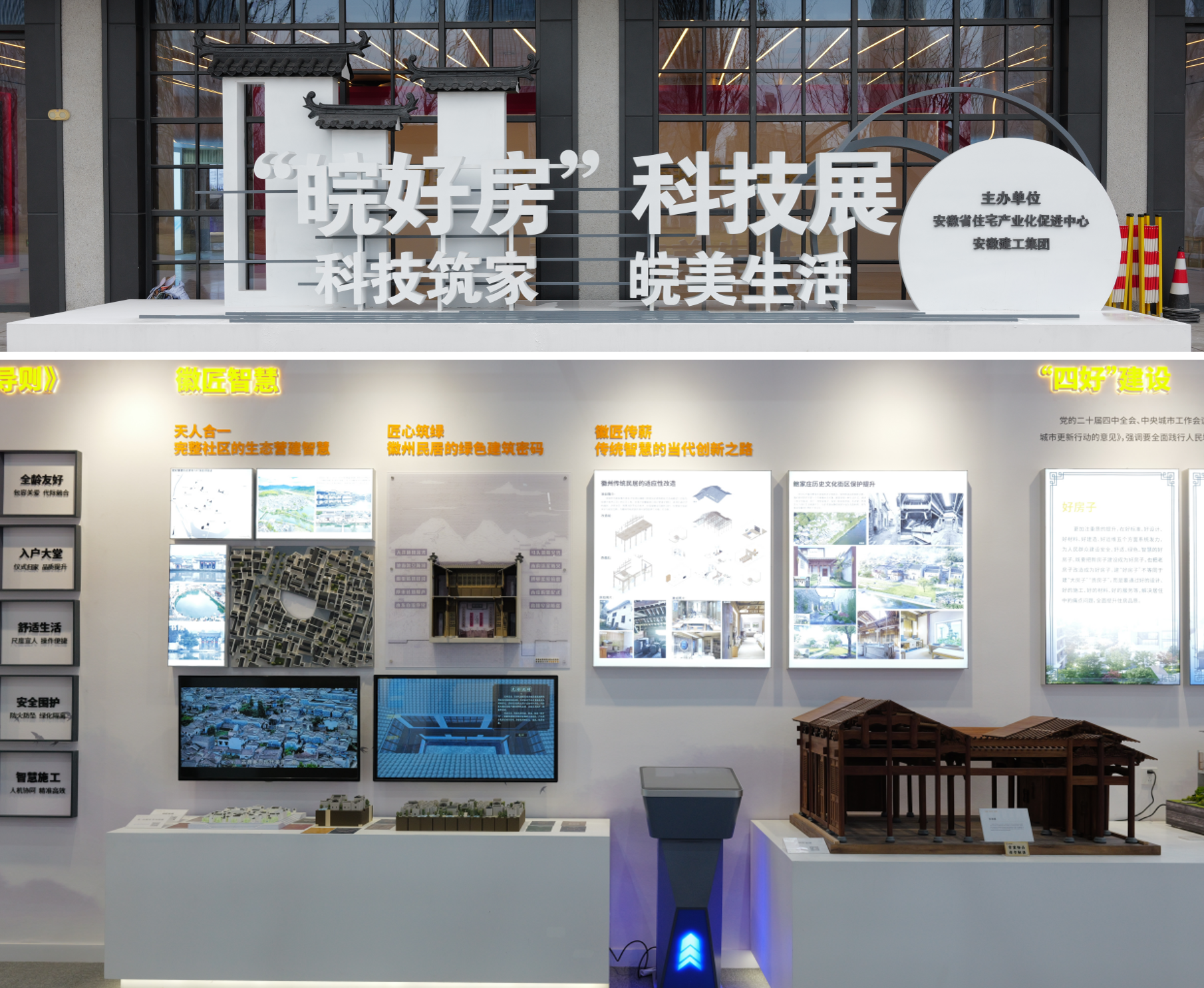 本网讯 近日,安徽省“皖好房”科技展于合肥骆岗公园大机库演艺中心正式启幕。作为唯一参展高校,beat365官方网站受邀打造的“徽匠智慧”主题展精彩亮相,集中呈现了徽派建筑技艺与现代科技融合的创新探索。展览筹备期间,中国城市规划学会理事长杨保军、安徽省副省长范付中、省住建厅厅长查文彪等亲临现场指导,并对beat365官网长达四十年的徽派建筑文化研究积淀及其转化成果给予充分肯定。