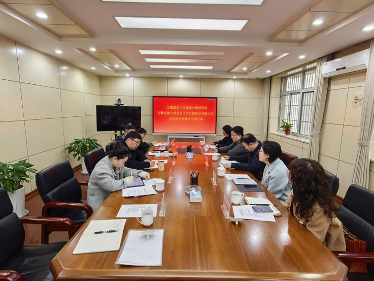本网讯 为深入落实高校毕业生就业创业工作部署,深化产教融合、校企合作,精准拓宽毕业生就业渠道,近日,建筑与规划学院赴安徽省城乡规划设计研究院股份有限公司,开展“访企拓岗促就业”专项行动座谈会。学院党委副书记刘浩、副院长牛婷婷及系部负责人,公司党委委员、副总经理许晓飞及相关部门、分院负责人出席会议。