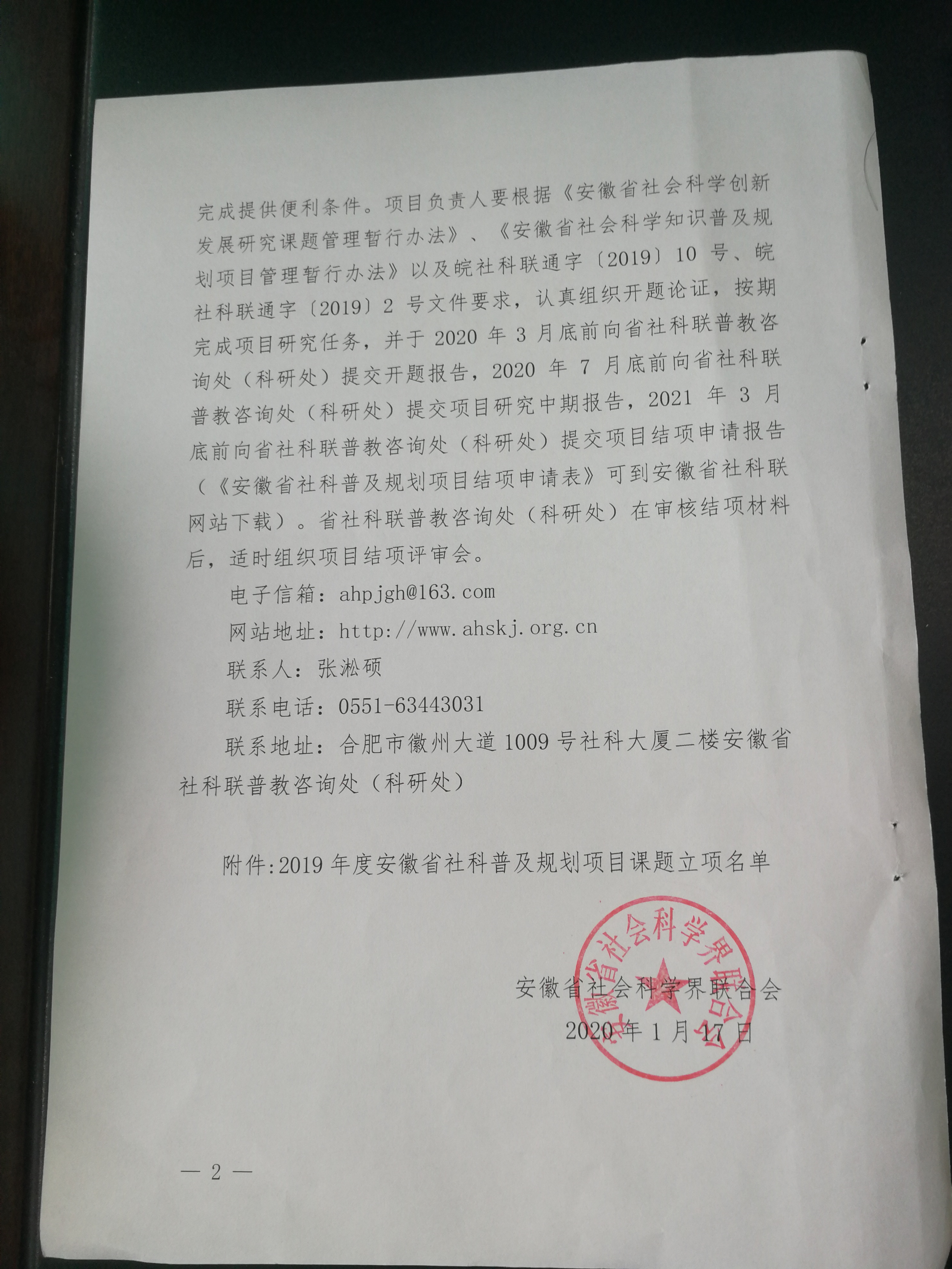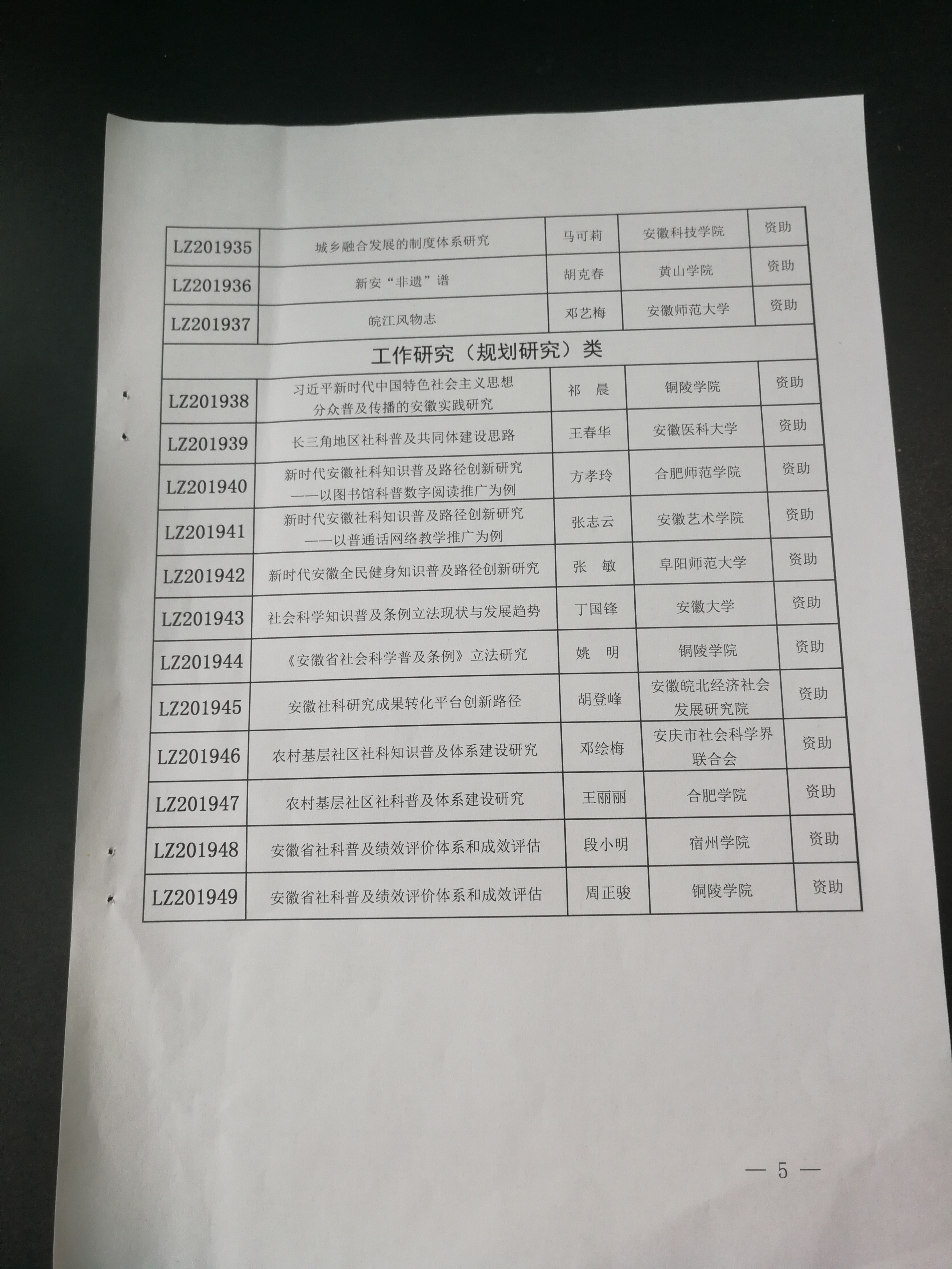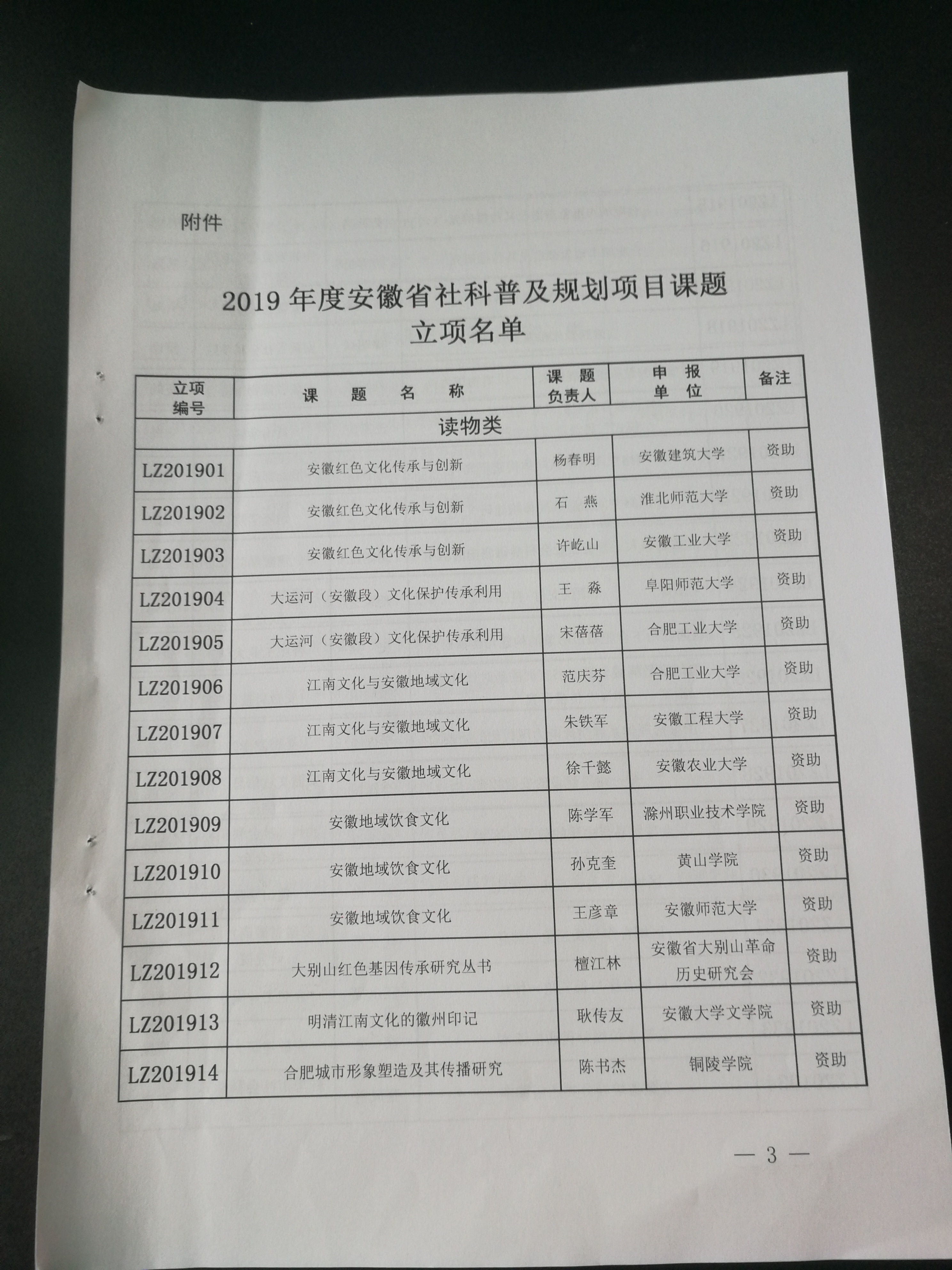 2019年度安徽省社会科学普及规划项目
