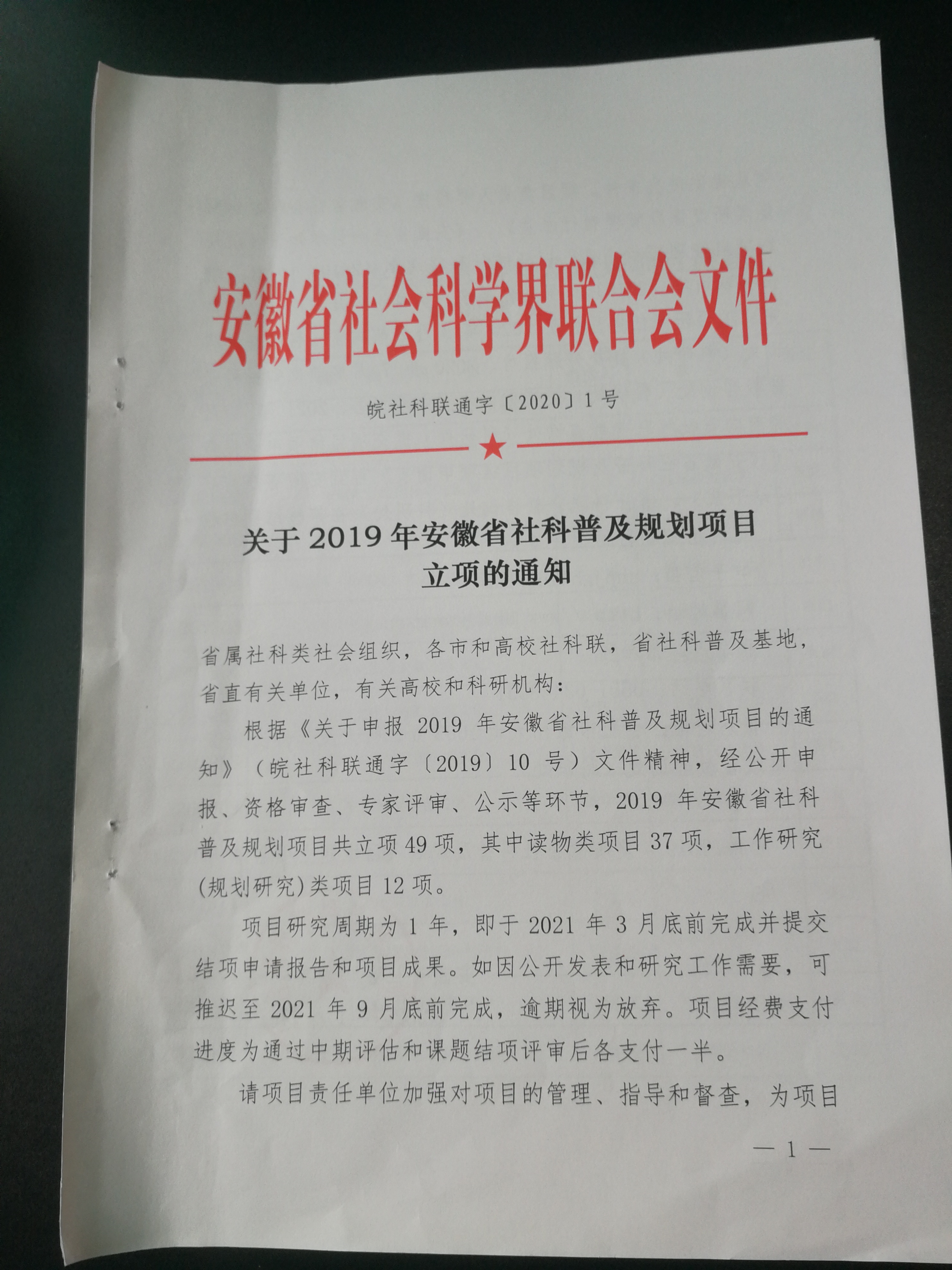 立项通知: