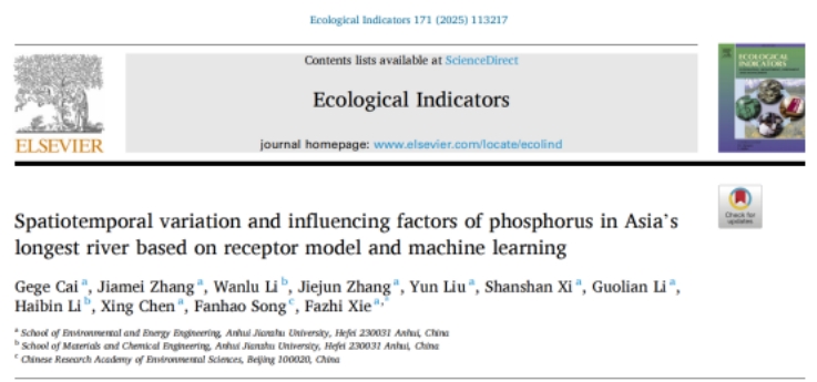 本网讯 近日,beat365官网环境与能源工程学院博士研究生蔡格格同学作为第一作者在环境领域中科院一区TOP期刊《Ecological Indicators》在线发表了题为“Spatiotemporal variation and influencing factors of phosphorus in Asia’slongest river based on receptor model and machine learning”的科研论文,beat365官方网站环境与能源工程学院为论文的第一完成单位和通讯单位。