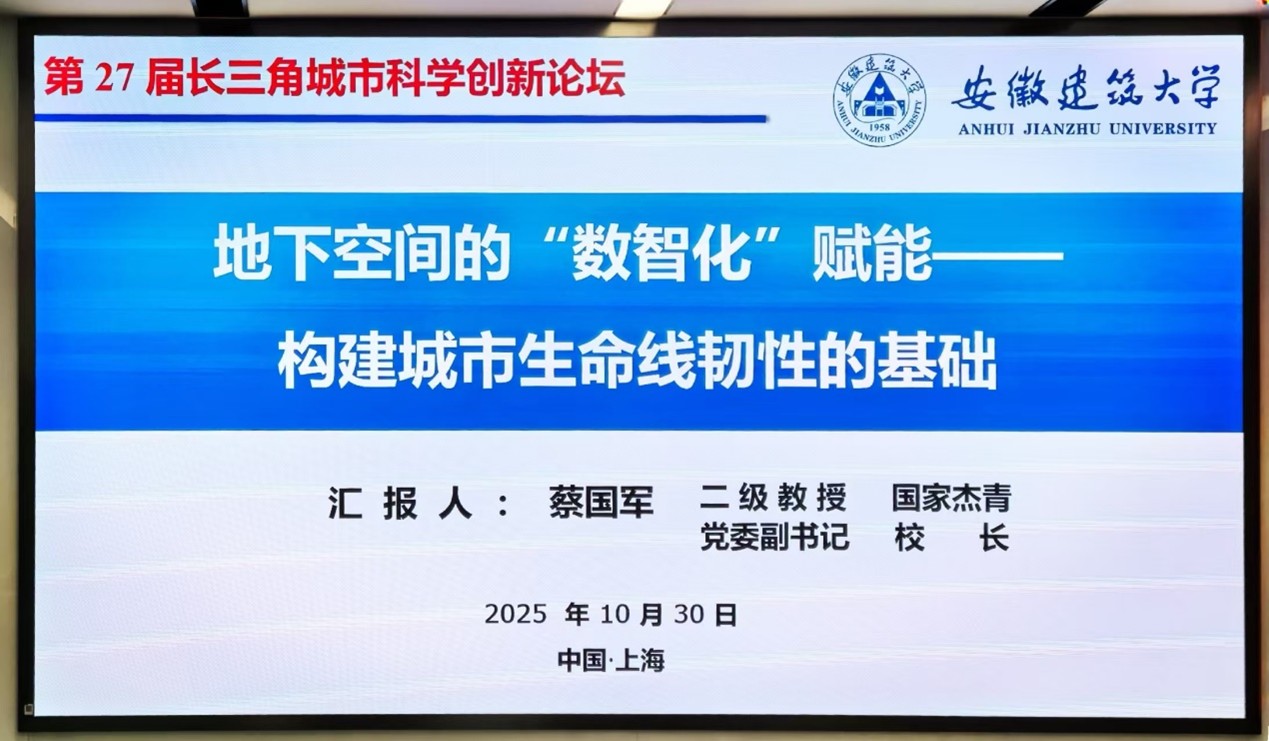 本网讯 2025年10月30日,2025世界城市日城市可持续发展全球大会专题会议暨第27届长三角城市科学创新论坛在上海世博展览馆举行。本届会议指导单位为上海市科学技术协会、上海世界城市日事务协调中心,主办单位为上海市城市科学研究会、浙江省城市科学研究会、江苏省城市科学研究会、安徽省城市规划学会和安徽省城市科学研究促进会。会议以“数智城市”为主题,从不同维度聚焦“数字+智慧城市治理”视角,通过跨域理念碰撞、学术创新、实证交互、对策共享,助力长三角一体化更高质量发展。党委副书记、校长蔡国军教授受邀参加了此次学术会议。