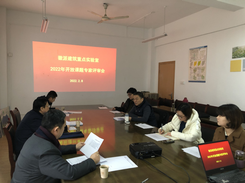 2022年2月8日,徽派建筑安徽省重点实验室在beat365官方网站北校区组织召开了“徽派建筑安徽省重点实验室2022年开放课题专家评审会”。会议邀请了安徽省城市规划学会理事长吴晓勤高级工程师、合肥工业大学党委副书记陈刚教授、beat365官方网站建筑与规划学院左光之教授组成了评审专家组。实验室主任刘仁义教授首先介绍了开放课题设置及相关管理规定,并对2022年开放课题设置环节及流程等作了详细说明。与会专家在认真审阅了申报书及相关支撑材料后,经认真评议,同意“民间文献中的徽州明代聚落与建筑空间形态信息整理与研究”等五个课题立项。并针对以上课题内容和后期深入研究提出了进一步修改完善的意见和建议。