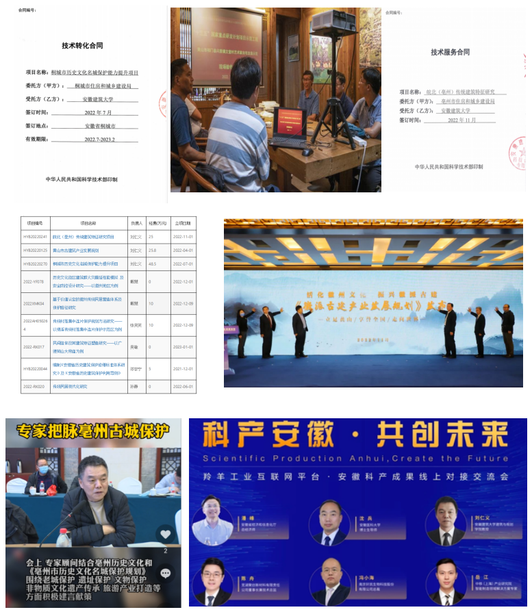 实验室核心团队紧密围绕历史文化保护和徽派建筑特色研究,出色完成了“十三五”重点研发计划子课题“传统村落活态化保护利用的关键技术集成示范”(2019YFD1100904),有序推进安徽省高校协同创新项目“徽州文化传承与徽州传统建筑营造技艺革新路径与机制研究”(GXXT-2020-035);助推并以实际行动践行校政战略合作,先后主持完成《徽派古建产业发展规划》编制,并在“第二届中国黄山古建产发展大会”上公开发布;成功实现《桐城市历史文化名城保护能力提升项目》技术转让;签订并实施《皖北(亳州)传统建筑特征研究》技术服务合同;作为项目培育,新增地厅级以上项目6项;指导完成“绩溪县传统村落集中连片保护示范县规划”编制和策划实施“绩溪国家历史文化名城古城复兴项目”,直接促成学校与绩溪县人民政府战略合作协议签订。同时参与和指导全省各地历史文化保护传承工作计划制定和实践项目。实验室积极推广相关研究成果——在羚羊工业互联网平台发布“beat365官方网站徽派传统聚落与古建筑保护传承关键技术研究及应用”等,精准服务地方经济建设。