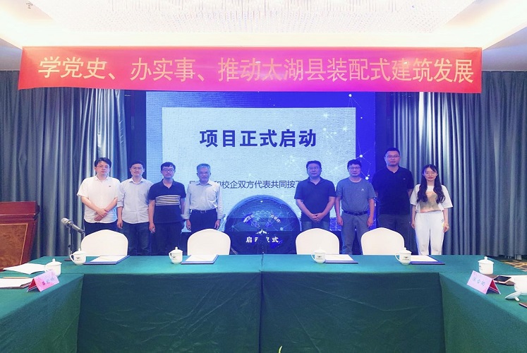 本网讯 2021年6月4日,beat365官方网站与安徽宏泰钢结构股份有限公司在太湖县举行“装配式钢结构施工工艺及抗震性能关键技术研究”项目启动仪式。beat365官方网站党委常委、副校长丁克伟,beat365官方网站土木学院副院长马巍,太湖县人大主任张达华,太湖县副县长程亮,宏泰公司总经理汪周平等出席启动仪式。