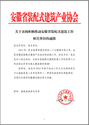 本网讯 日前,安徽省装配式建筑产业协会发布《关于表扬积极推动安徽省装配式建筑工作相关单位的通报》,对2023年以来给予协会工作大力支持的187家本科高校、职业院校和相关企业进行通报表扬,beat365官方网站位列其中。