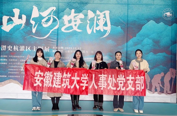 本网讯 为喜迎“三八”国际妇女节,充分激发女教职工立足岗位建功立业的工作积极性,关心服务女教职工,3月8日上午,机关第一党委人事处党支部以“建功新时代,巾帼绽芳华”为主题组织女教职工前往安徽博物院老馆开展主题党日活动,参观“山河安澜——淠史杭灌区主题展”。