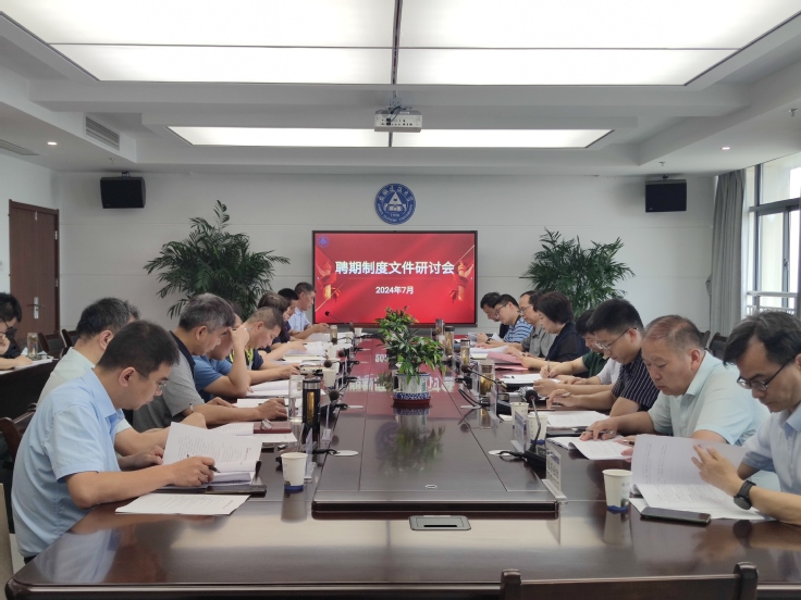本网讯 2024年7月16日上午,学校在徽风楼21楼第三会议室召开聘期制度文件研讨会,会议由校党委常委、副校长李早主持,发规处、人事处、教务处、科技处主要负责人及各教学单位院长(主任)参加会议。