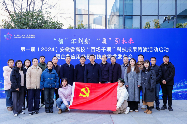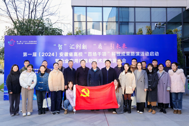 本网讯 12月18日,正值第一届安徽省高校“百场千项”科技成果路演活动启动暨企业应用场景和技术需求发布会举办之际,机关第一党委科技处、人事处党支部邀请校党委书记马文革,校党委常委、副校长蔡国军,赴安徽创新馆开展主题党日活动。
