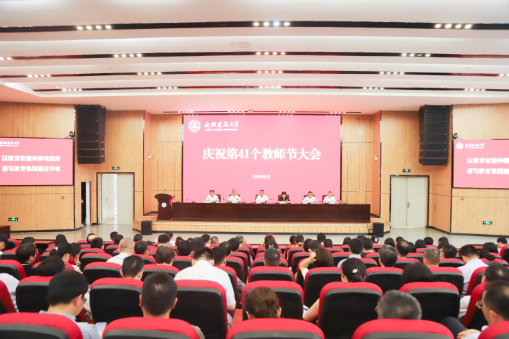 本网讯 9月10日,学校在紫云路校区徽风楼二楼报告厅召开第41个教师节庆祝大会。校领导,2025 年度校师德标兵、优秀教师、优秀教育工作者,近一年来省部级及以上人才计划入选者、科研业绩突出相关人员、新入职教职工等教师代表,全体处级干部参加会议。会议由校党委常委、副校长李早主持。