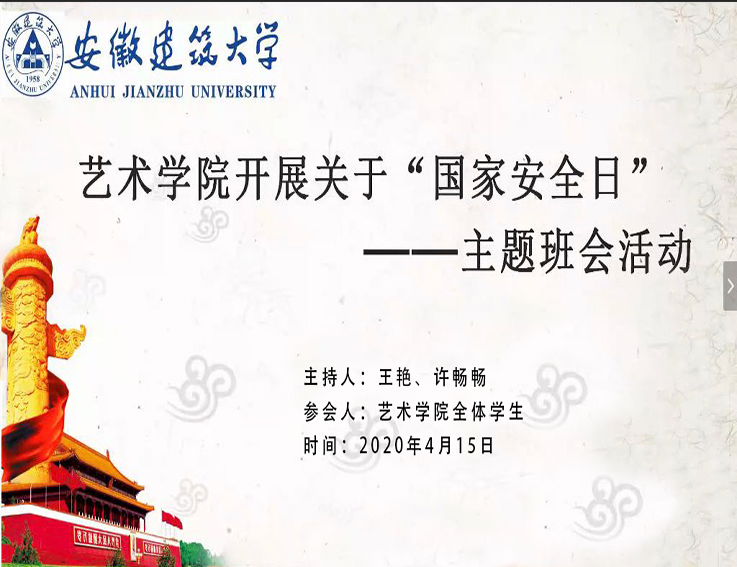 本网讯 为增强学生对国家安全意识的认知,艺术学院于4月15日组织开展了“国家安全日”主题班会活动,由辅导员老师王艳、许畅畅主持,艺术学院全体学生参加。
