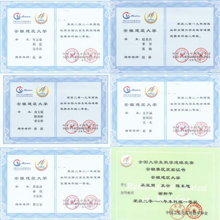学院教师组织全校学生参加全国大学生数学建模竞赛、大学生数学竞赛、统计建模大赛、物理实验竞赛、市场调查大赛,并给予参赛学生认真的指导,赛学相长,以学科竞赛为纽带提高学生学习能力也提高教师自身教学能力,近五年来学生在全国、全省竞赛中都取得骄人成绩。其中,全国大学生数学竞赛省级一等奖15项、二等奖66项、三等奖114项。全国大学生市场调查与分析大赛国家级一等奖1项、三等奖4项,省级一等奖4项、二等奖31项、三等奖27项。数学建模竞赛国家级特等奖1项、一等奖5项、二等奖28项、三等奖8项,省级一等奖17项、二等奖35项、三等奖72项。