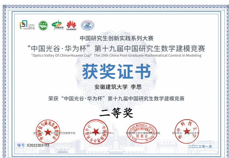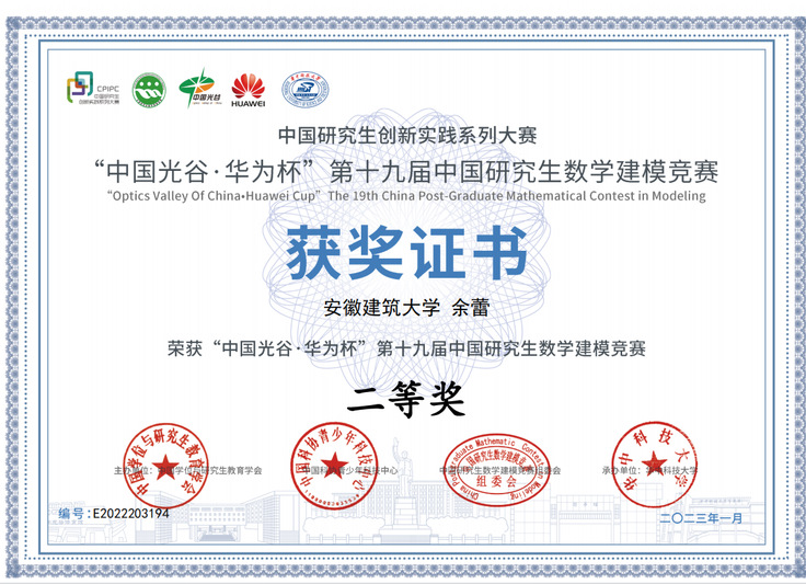 本网讯 2022年“中国光谷Ÿ华为杯”第十九届中国研究生数学建模竞赛结果于近日揭晓,beat365官网共有26支队伍参赛,其中荣获全国二等奖1项,三等奖2项。本次大赛共吸引国内外共465个研究生培养单位的17970队研究生参赛,一等奖获奖比例仅为1.10%,二等奖获奖比例为13.36%,三等奖获奖比例18.58%,总获奖比例33.03%。