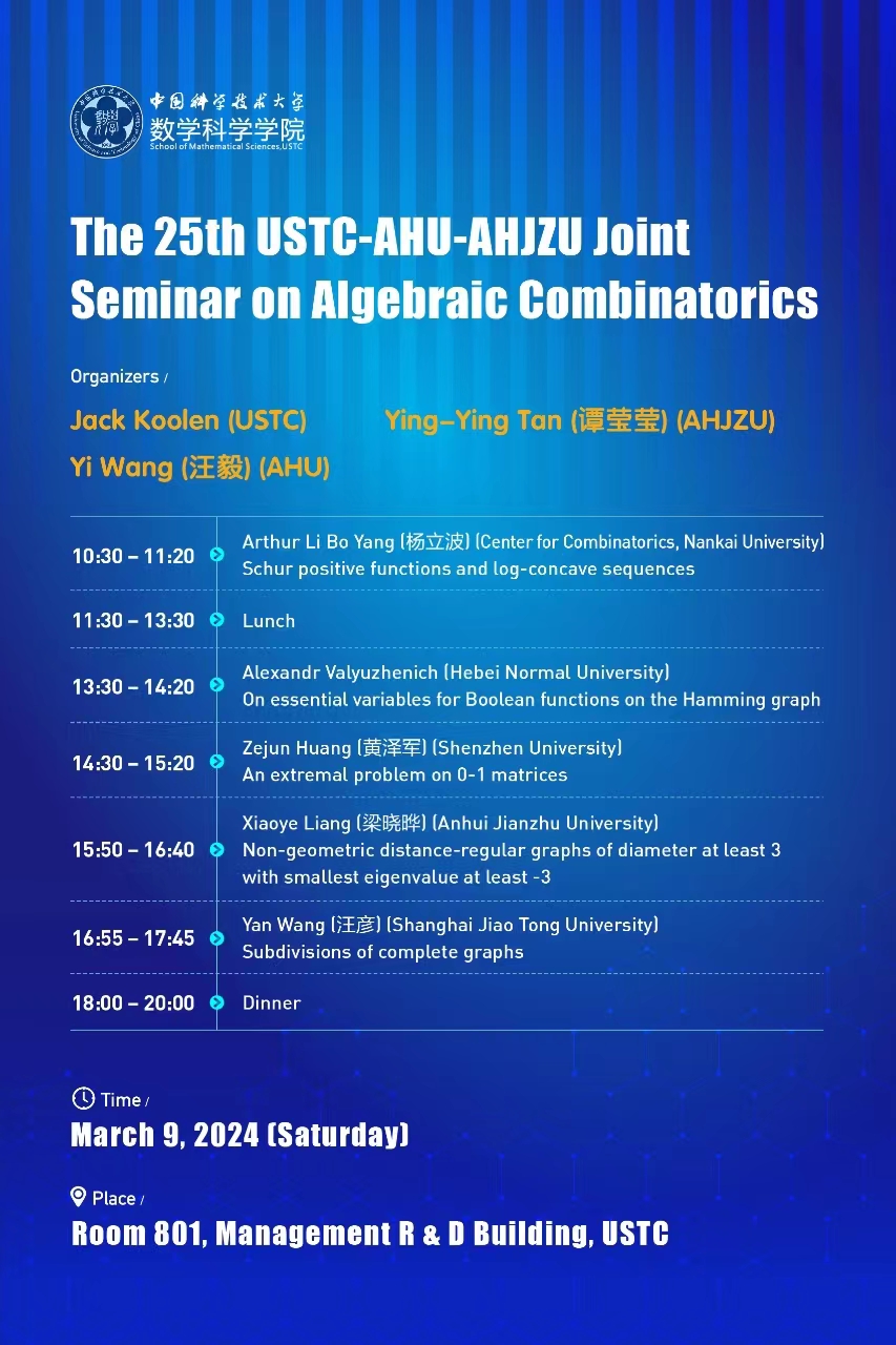 第25届中科大-安大-安建大-代数组合联合研讨会通知