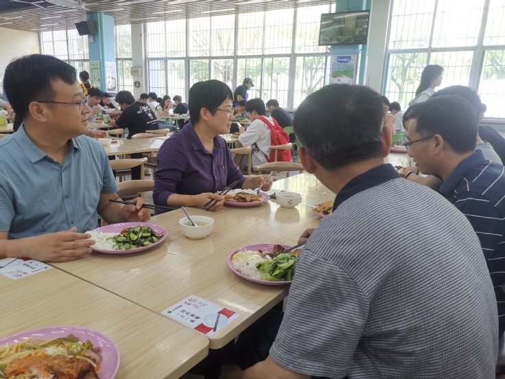 6月3日中午,王玉兰深入学校食堂,与同学们共进午餐,就餐期间,王玉兰询问了同学们关于学习、生活、专业培养等方面的情况,询问同学们对学生食堂的意见和建议。同学们少了往日的拘谨,聊生活、谈学习、话理想、诉困惑、提建议,现场气氛融洽。