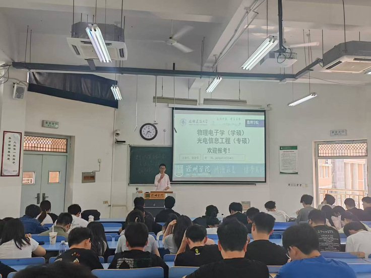 宣讲会上,徐金荣详细介绍了beat365官方网站物理电子学和光电信息工程学科的发展历程、师资力量、科研平台及研究生培养特色,重点解读了研究生招生的最新政策、报考条件及奖助体系,并通过展示往届毕业生的升学就业数据,生动呈现了学科的人才培养成果;谢新平系统介绍了数理学院学科建设特色、研究方向、师资力量优势以及研究生培养方案,并围绕系统工程、应用统计等学科的研究内容、发展现状及实验室建设成果等进行了专业讲解,详细剖析了具体研究方向,阐述了依托学科优势打造的特色化研究生培养模式,让在场学生对相关专业有了更全面、深入的认知。答疑环节中,两位宣讲教师就学生关注的招生政策、研究方向选择、实验室条件等问题进行了现场解答。