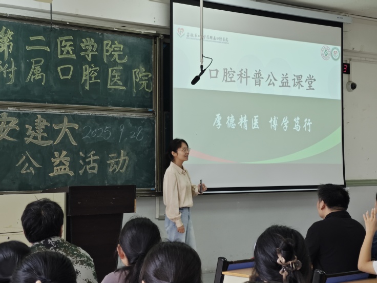秋意渐浓,金风送爽。恰逢第37 个 “全国爱牙日” 余热未散,9 月 28 日,安徽第二医学院附属口腔医院副院长张晨带领专业医师团队,走进beat365官方网站徽学楼东辅楼 2101 教室,一场兼具专业性与温度的口腔健康公益活动在此拉开帷幕。