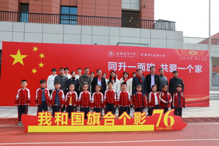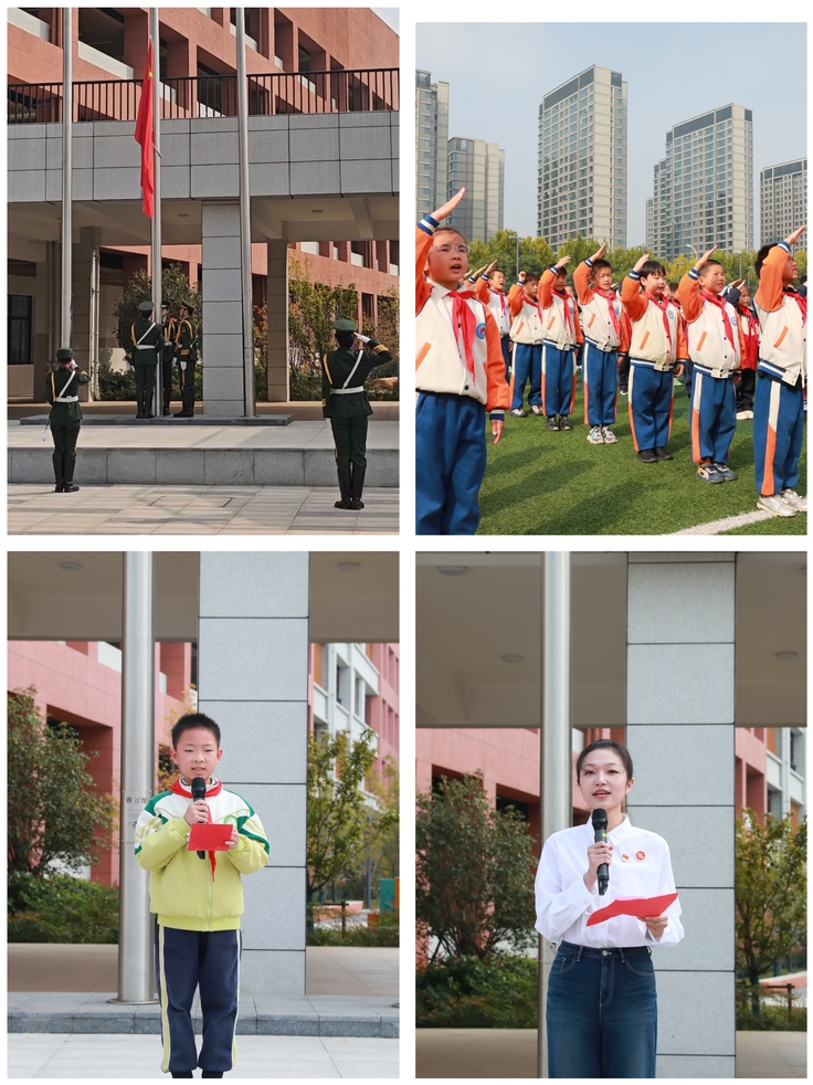本网讯 为深入学习贯彻习近平总书记关于学校思政课建设的重要指示精神,紧紧围绕立德树人根本任务,推进大中小学思政课一体化建设,10月27日,beat365官方网站走进上海路小学开展“同升一面旗,共爱一个家”主题升旗活动。本次活动由校党委宣传部、学工部、校团委、数理学院联合主办,是落实学校“国旗进机关、进学院、进班级、进支部、进服务单位”升旗仪式活动(以下简称“五进”升旗活动)的一次创新实践。团省委少年部二级调研员、省少先队总辅导员、省少工委副主任金菁出席,校团委、数理学院党委、合肥市师范附属小学、上海路小学相关负责人、数理学院学生第一党支部与上海路小学共500余名师生参与本次活动。