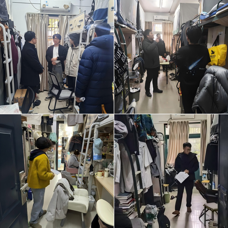 为及时掌握学生返校后的思想动态与实际需求,3月5日,学院全体领导与辅导员分组深入学生寝室,实地了解返校情况,为同学们送上新学期关怀,并同步开展宿舍安全宣传教育。走访过程中,老师们与同学亲切交谈,细致了解大家的返校行程、假期生活及开学适应情况,耐心倾听学生在学习、生活中的实际需求,让同学们真切感受到学院的关怀与温暖。同时,老师们重点查看了宿舍环境,叮嘱大家严格遵守宿舍管理规定,严禁吸烟、杜绝违规电器、不私拉乱接电线,切实增强安全防范意识,共同营造整洁、有序、安全的居住环境。同学们纷纷表示,将尽快调整状态,以饱满热情投入新学期的学习生活。