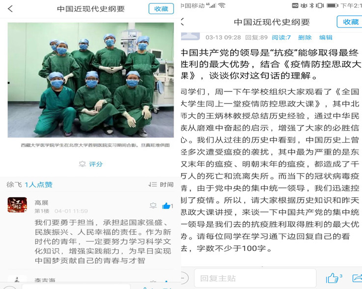 专题式教学立足于教材,适当关注学界研究前沿和社会热点,帮助学生掌握理论上的“应知应会”。在融入式教学中,教师将“战疫”等社会热点融入云端课堂,将“战疫”精神贯彻到教学的各个专题中去。教师在每节课的开始,将“战疫”的报道和实况告知学生,让学生对战疫进度有清晰了解,增加学生对战疫必胜的信心;在课堂教学中时时用中国抗疫中所取得的成就来印证中国特色社会主义理论的先进性。植入式教学是指引入案例来辅助教学,在疫情防疫时期,主要是将疫情防控的相关案例植入到教学过程中,如当前的疫情是一场人民战争,这很好的阐释了毛泽东思想所强调的“群众路线”,只要人民群众齐心协力,中国必将取得“抗疫”战争的伟大胜利;对于这次疫情的灾难性后果,可以让同学们对于社会主义生态文明建设有更深刻的理解,有助于树立保护自然、爱护自然、人与自然和谐共生的生态文明观......代入式教学是指充分借鉴网络优秀课程资源为“概论”课云端教学助力,如“全国高校思政课教师网络集体备课平台”、“思政课高精尖创新中心”等。