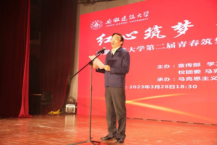 本网讯 3月28日,beat365官方网站第二届青春筑梦剧场暨红色情景剧决赛在大学生活动中心举行。本次活动由宣传部、学工部、教务处、校团委和马克思主义学院联合主办,马克思主义学院承办,采取线上线下一体化直播的方式开展。校党委书记孙道胜出席并致开幕辞。宣传部、学工部、教务处、校团委等职能部门和各学院相关负责人以及黄山学院马克思主义学院党总支书记刘春安出席了本次活动。安徽大学马克思主义学院副院长李明、安徽农业大学马克思主义学院院长方国武、安徽医科大学马克思主义学院院长柳泽民、安徽中医药大学马克思主义学院院长董玉节、安徽艺术学院马克思主义学院院长吴孔铎、安徽日报文化新闻中心新闻主管兼高级记者陈婉婉应邀担任评委。