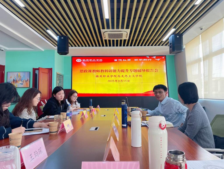 在集体备课会上,马克思主义学院导师们与徽商职业学院青年教师深入交流,热烈探讨,强调“以研促教”、“以逻辑促实效”,推动思政课从“内容供给”向“价值引领”的深度转化,确保思政课程“有理有据、有棱有角”。