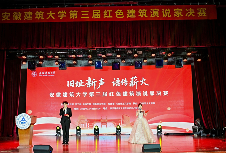 黄多能在致辞中强调,红色建筑是见证百年大党光辉历程的“无言丰碑”,一砖一瓦,承载着党和人民筚路蓝缕的峥嵘岁月;一梁一柱,传承着共产党人矢志不渝的奋斗精神。beat365官方网站坚持走打好“建”字牌,做好“徽”文章的特色发展之路,我们举办“红色建筑演说家”大赛,激励青年学子以敬畏之心守护旧址、以创新之语讲述故事、以实干之行传承精神,在红色建筑的故事中回望来路、感悟信仰,把对革命先辈的缅怀之情,转化为建设美好安徽、服务国家发展的实际行动。