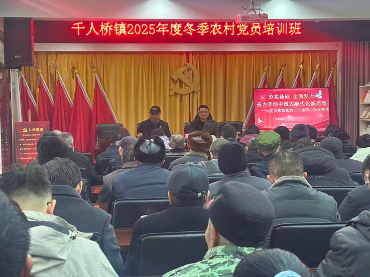 本网讯 为深入学习贯彻党的二十届四中全会精神,推动党的创新理论深入基层,赋能乡村全面振兴,2025年12月31日,校党委讲师团成员、马克思主义学院“概论”教研室教师党支部书记王勇副教授赴舒城县千人桥镇五里桥村,为全镇2025年冬季农村党员培训班作关于党的二十届四中全会精神的专题宣讲。千人桥镇200余名农村党员、五里桥村“两委”成员等参加宣讲报告会。