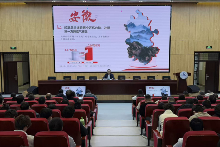 2025年11月28日,校党委副书记、校长蔡国军在徽韵楼学术报告厅,为土木工程学院本科生和研究生代表讲授以党的二十届四中全会精神为主题的思政课。蔡国军系统解读全会重大意义与“十五五”发展部署,结合土木学科特色,剖析重大基建、绿色转型等领域的人才机遇,强调专业的基础性、先导性作用。他寄语学子,要坚定理想、扎实学识,锤炼实践与创新能力,将个人追求融入国家大局,以工匠精神服务“建造强国”,成长为堪当民族复兴重任的复合型人才。课程引发热烈反响,坚定了学子报国决心。